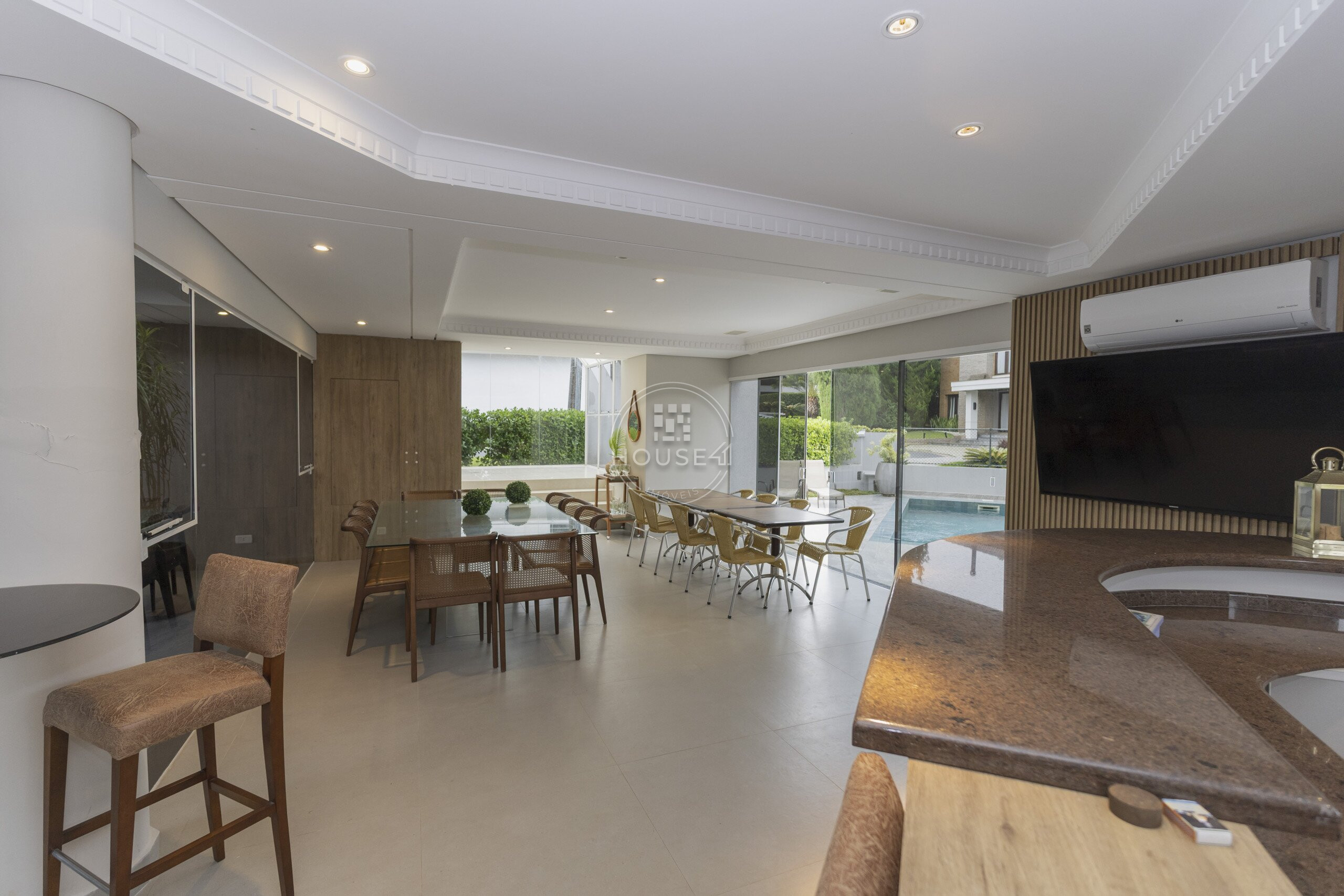 Com 497 m² de área privativa em um terreno amplo de 845 m², o imóvel foi projetado para oferecer integração, funcionalidade e elegância em cada detalhe. Os ambientes são generosos e bem distribuídos, com destaque para a área social integrada, que conecta sala de estar e jantar de forma harmoniosa, ideal para receber com estilo. Os acabamentos são de alto padrão, reforçando a qualidade e o cuidado presentes em toda a residência.