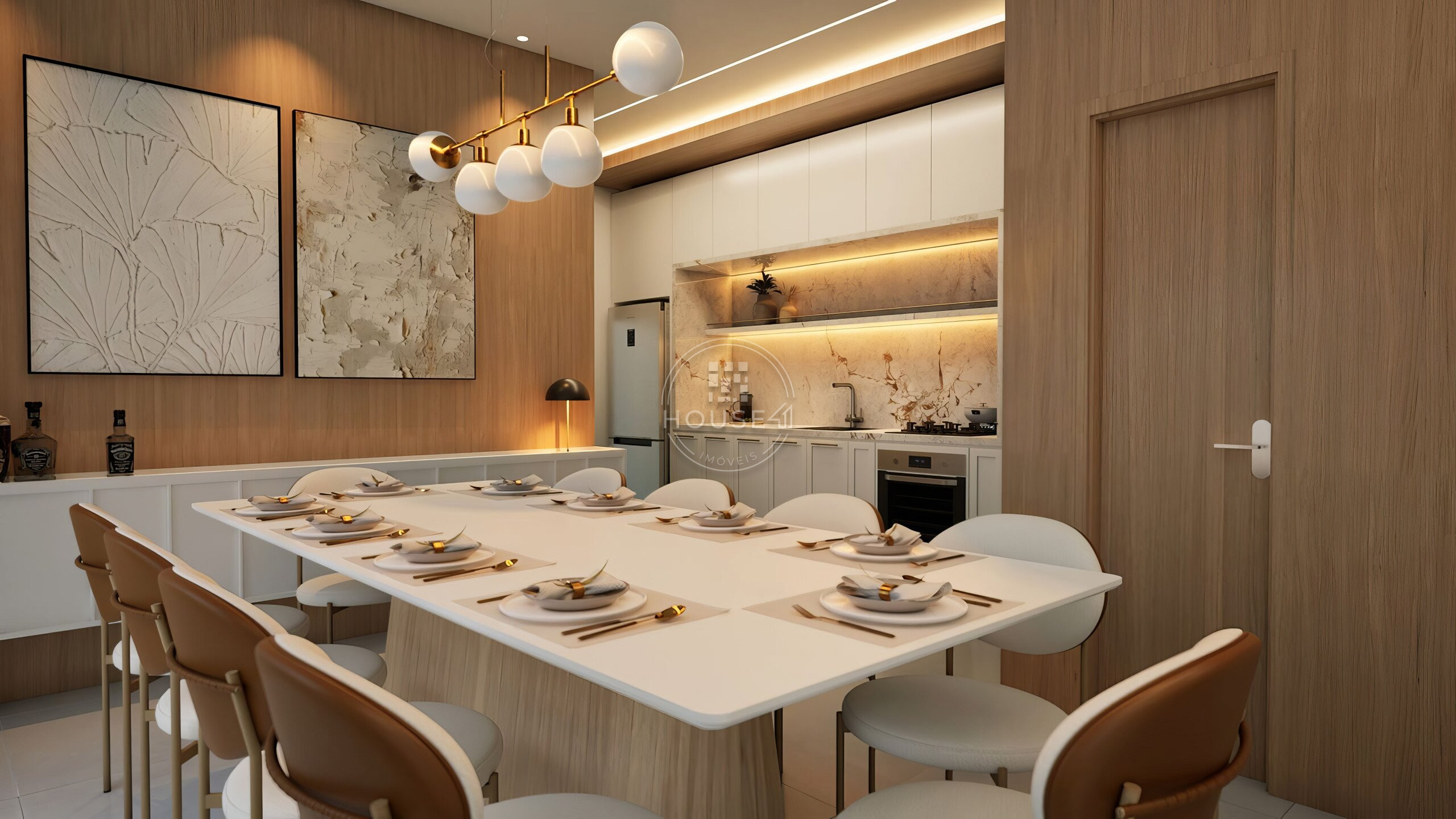 - Cozinha em conceito aberto integrada com salas e área gourmet